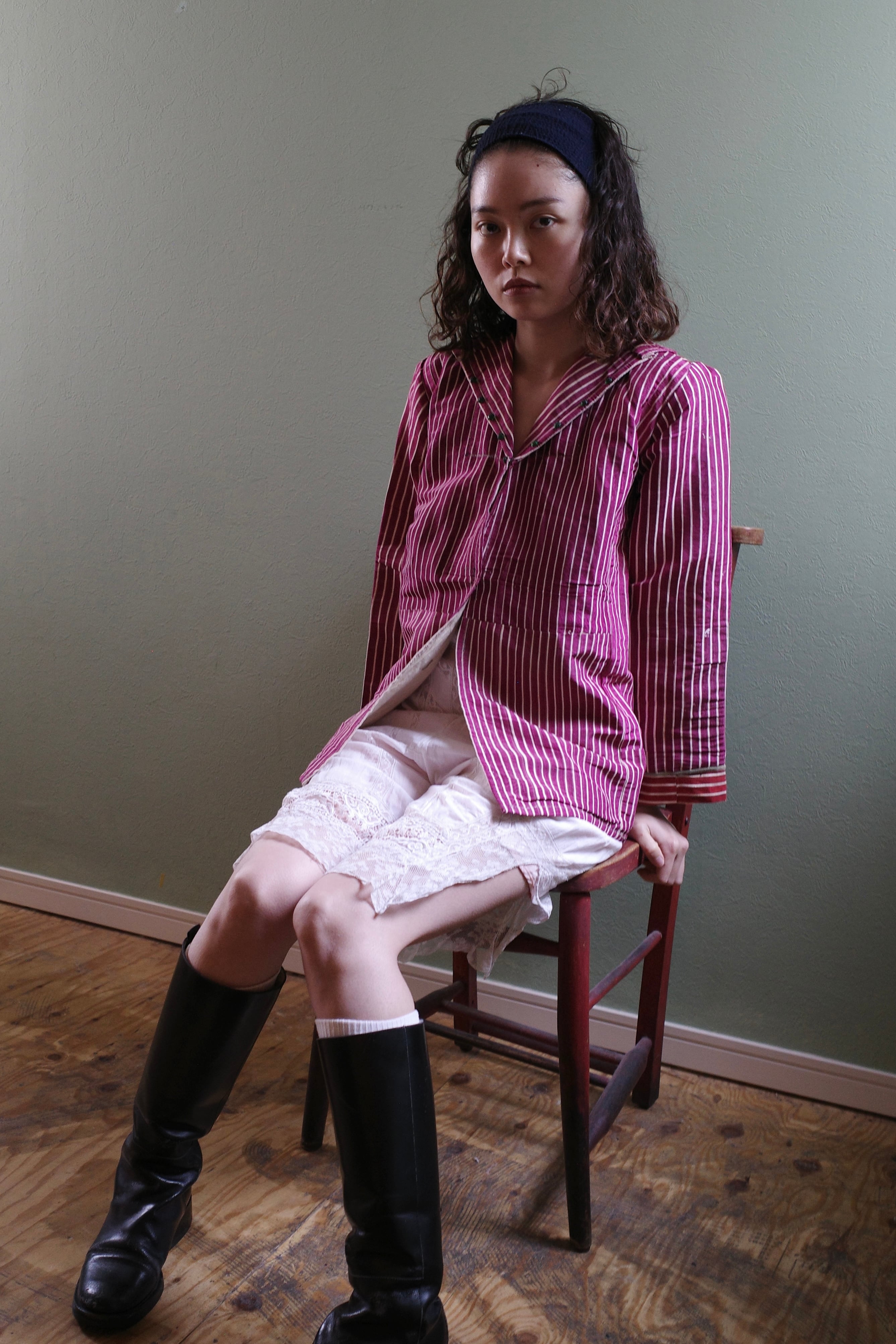 【item】 アイテム名 :ジャケット 年代 : 1920年代 商品の状態 : 経年変化あり 商品の仕様 : 前見頃スナップボタン その他 : パッチワークのようなストライプの生地 【material】 cotton100% 【size】 着丈 : 68cm 身幅 : 44cm アームホールぐるり 1周 : 43cm 肩幅 : 35cm 袖丈 : 53.5.cm 【model 】 159cm 【attention】 こちらの商品は海外からのヴィンテージアイテムになります その為、ヴィンテージならではの風合いがございます。 お直しなどを行い販売をしておりますが、風合いを残す為の染みや破れなどもございますが、デザインとしてご理解いただけますと幸いです 返品、交換などは基本的にはお断りさせていただいております その為、購入前後での取り扱い、コーディネートなどのご相談はお気軽にご相談下さいませ