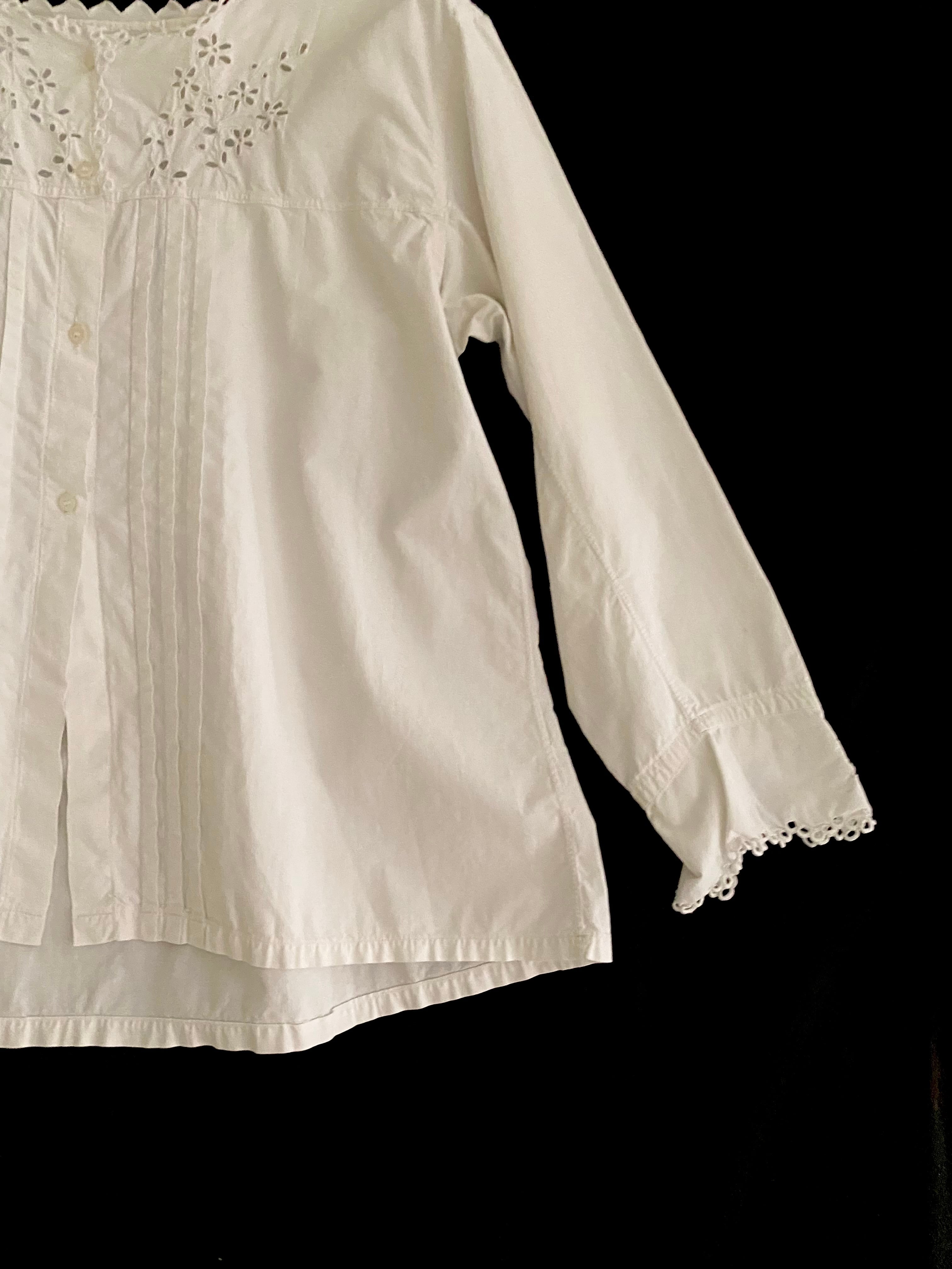 その他 : 胸元やカフスに透かし穴のレース、生地もしっかりとしているため着用しやすい