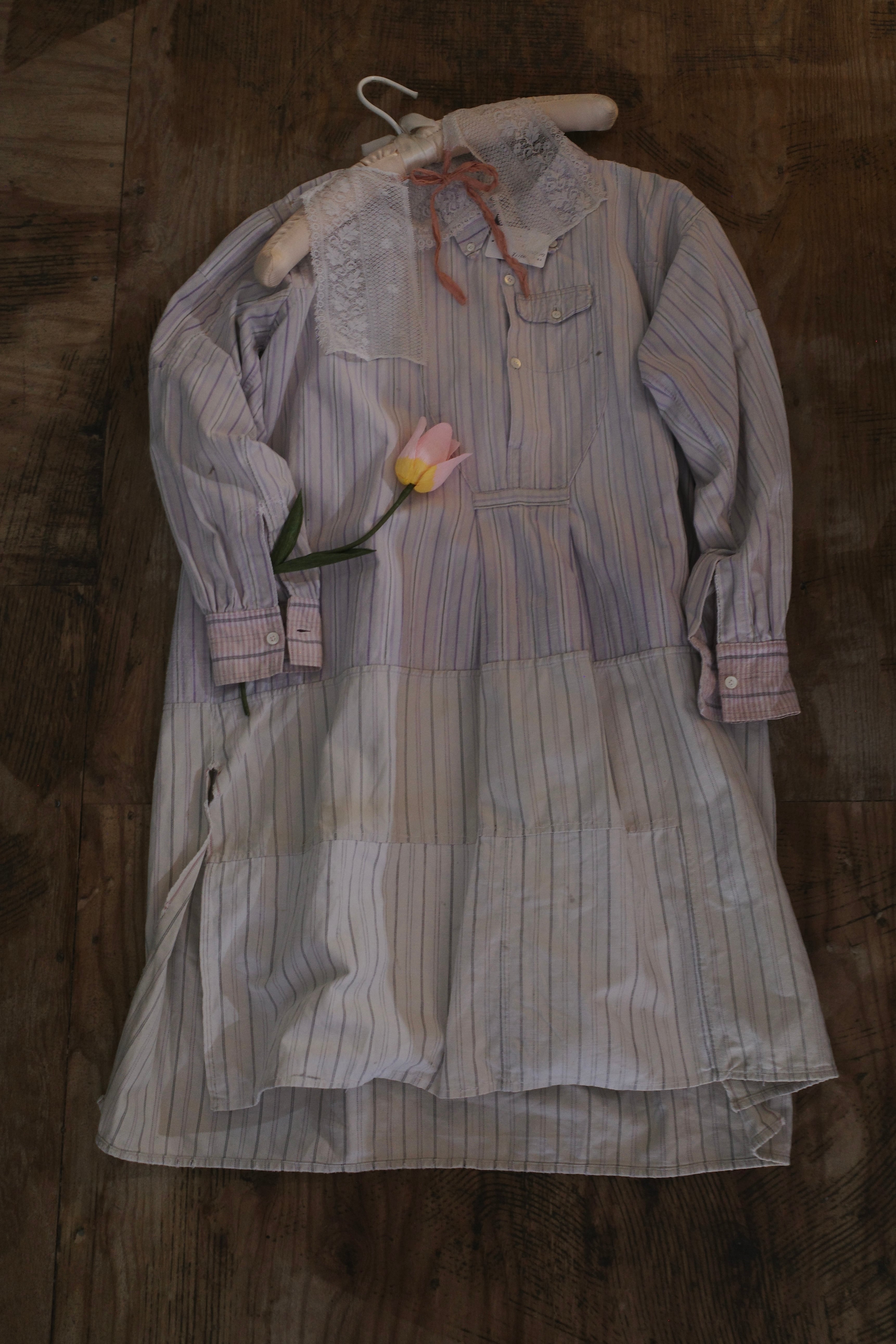 お直しなどを行い販売をしておりますが、風合いを残す為の染みや破れなどもございますが、デザインとしてご理解いただけますと幸いです