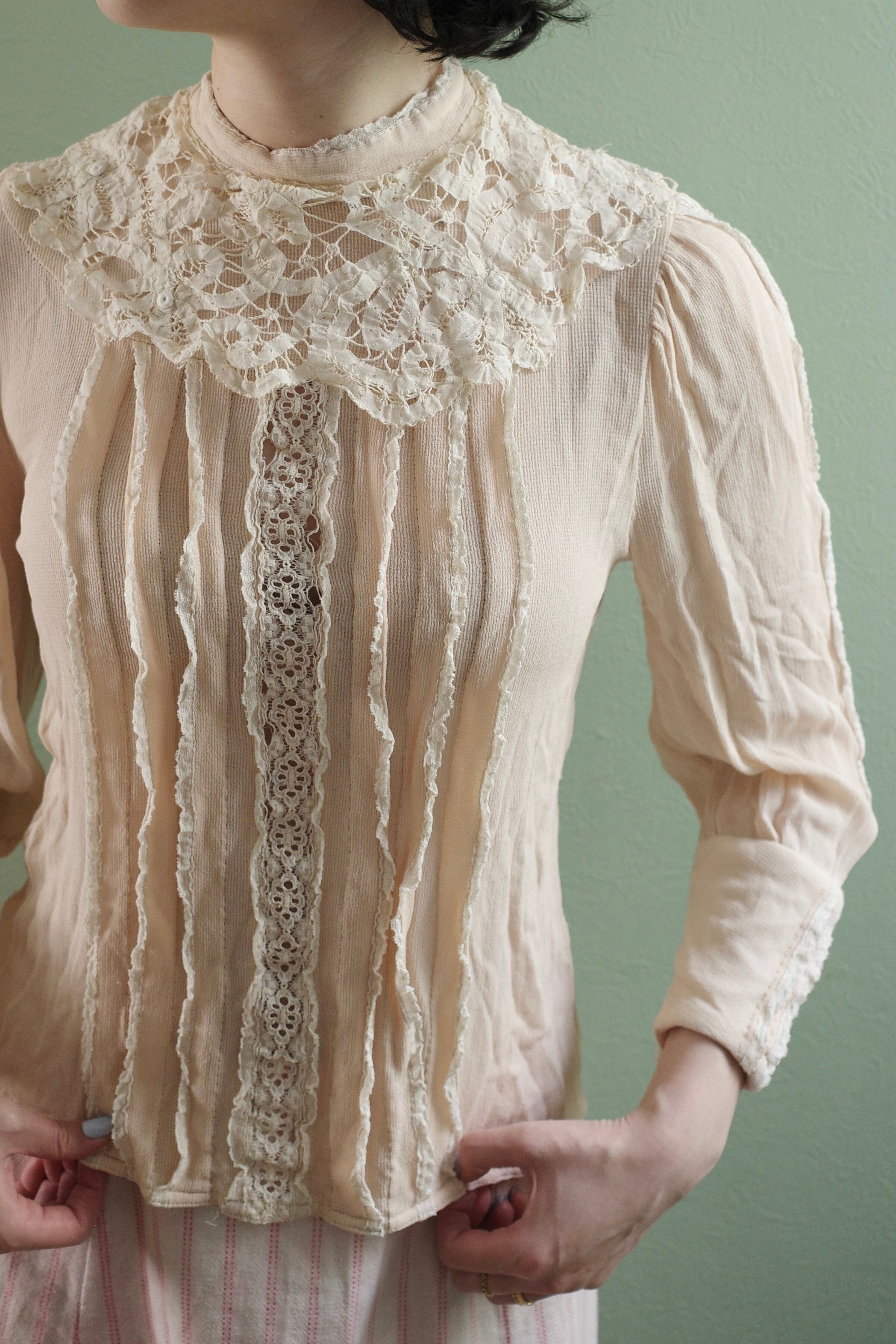 1970's crape and lace blouse MA84