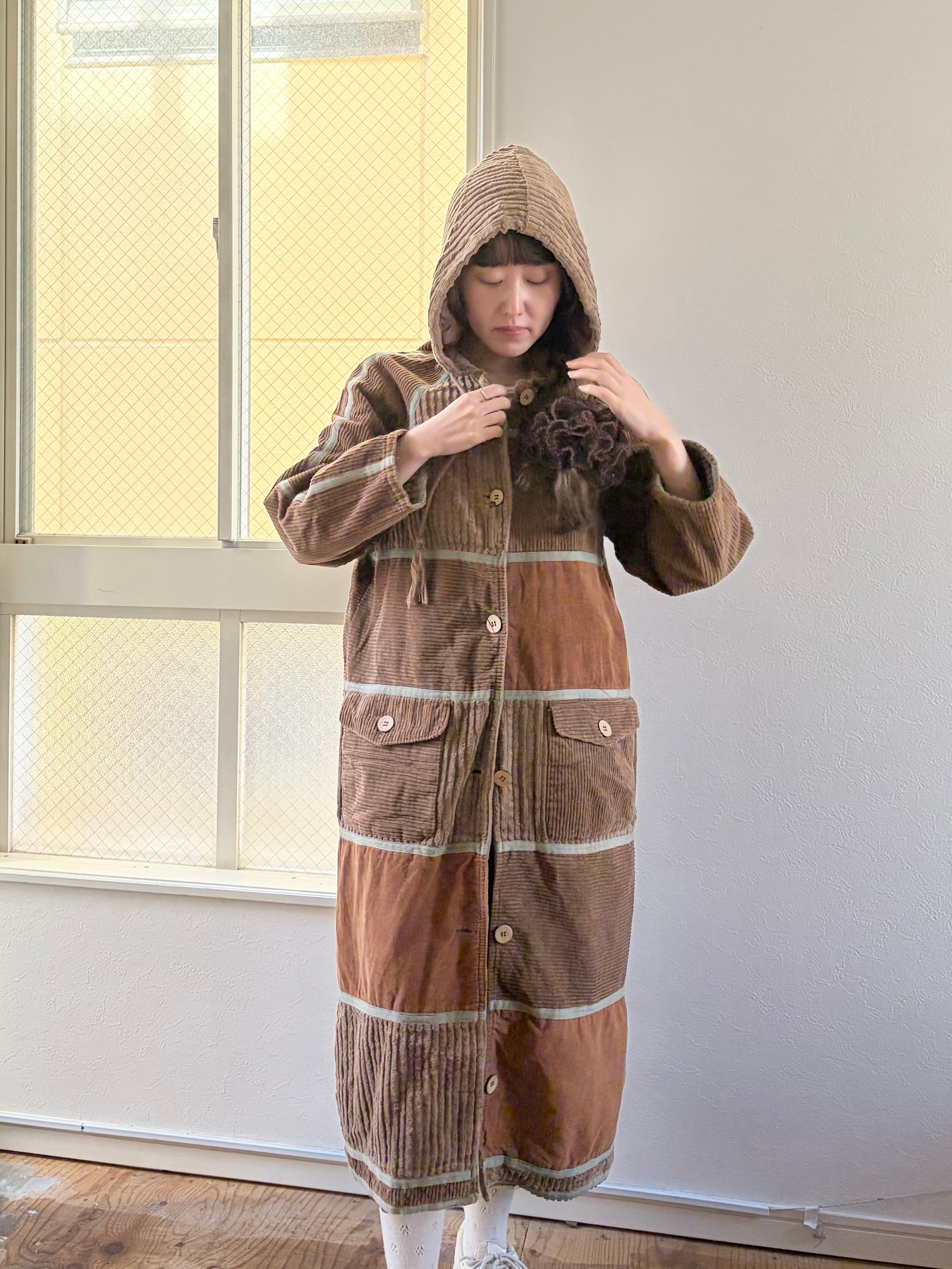 Coat hooded corduroy am693-2