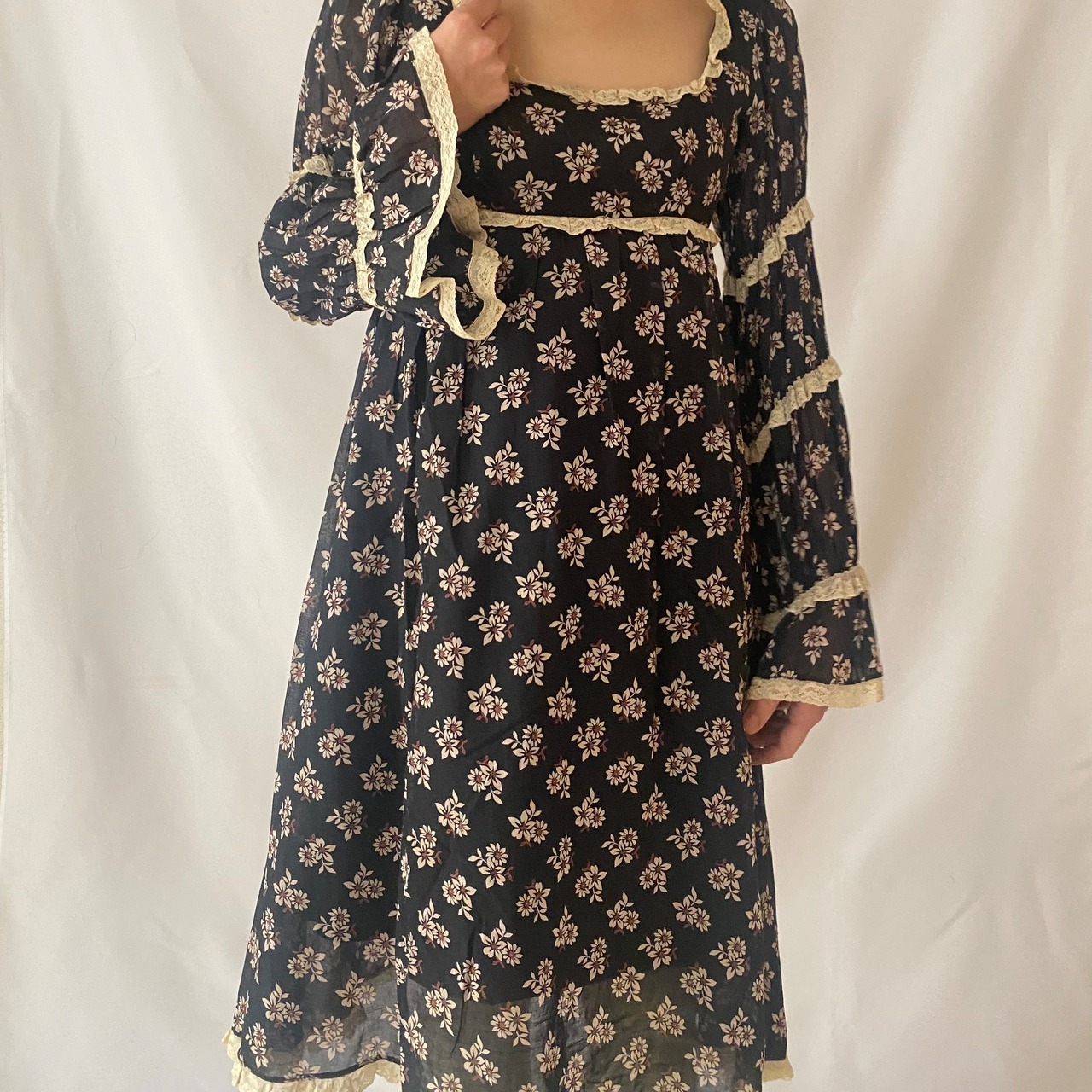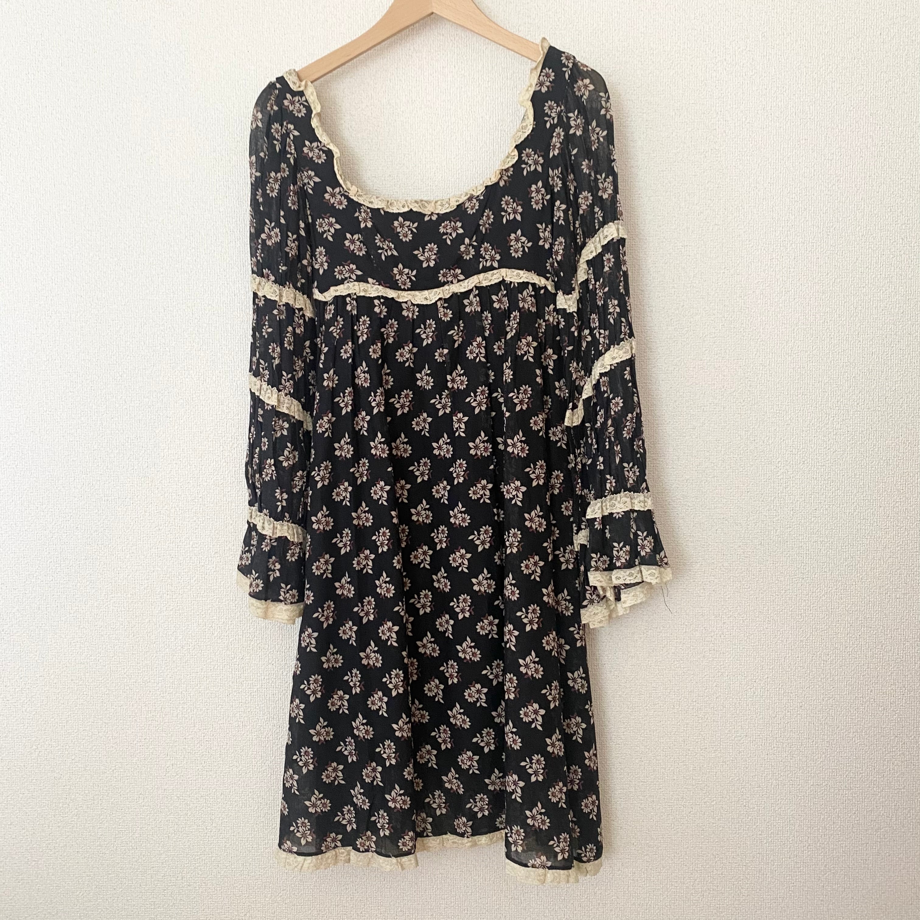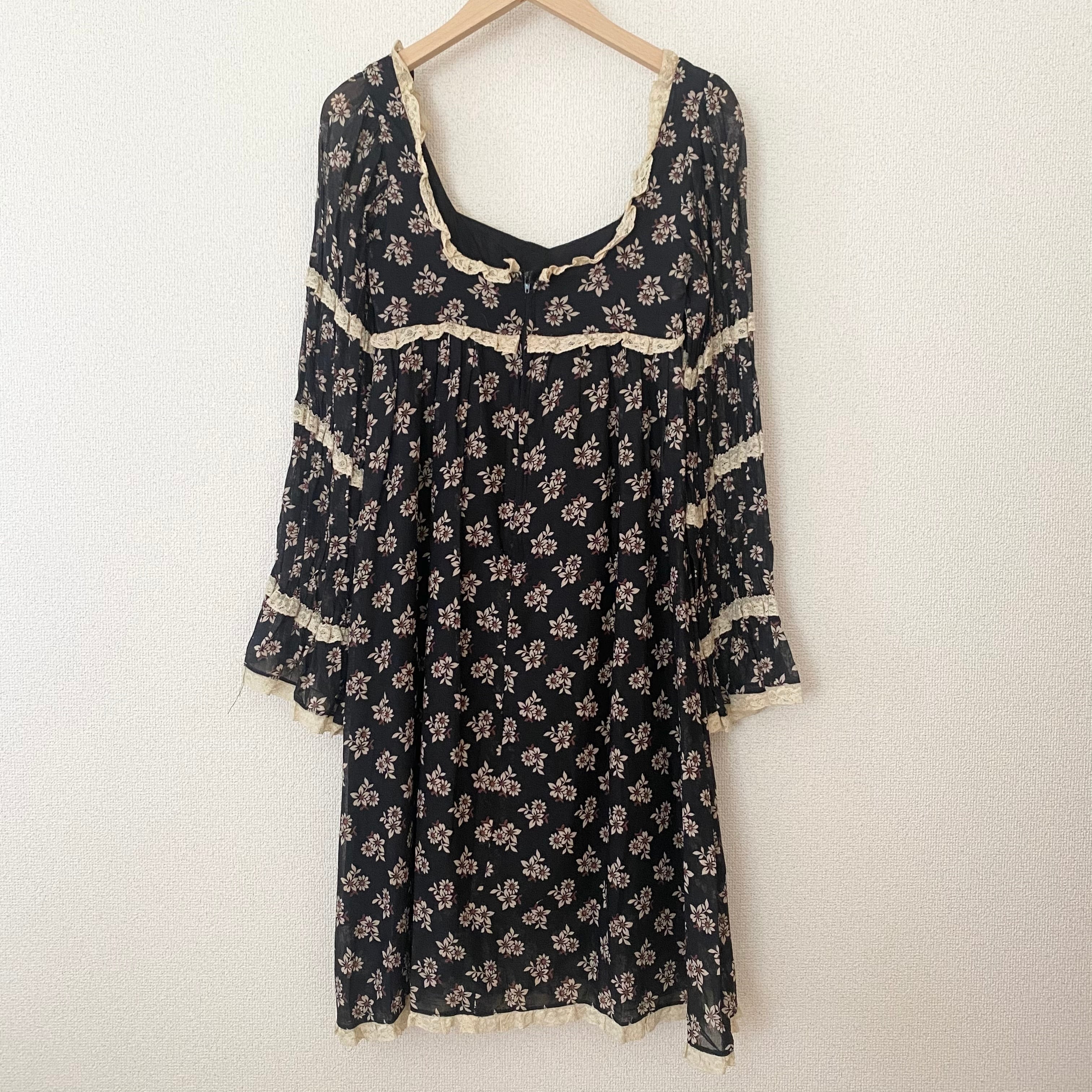 1960's print lace dress am647